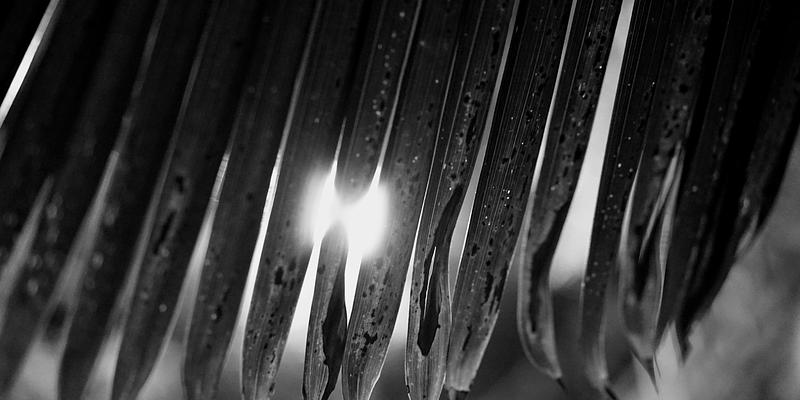 In a park near a Taipei home, I found light shining through palm fronds during an overnight photowalk.