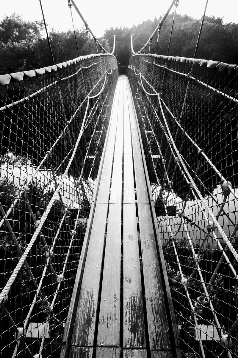An ecological preserve in Kaohsiung, Taiwan, features this visually complex footbridge.