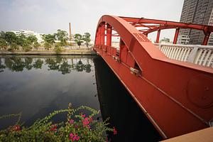 Bouganvillea, Bridge, Stack, Factory, Apartments.